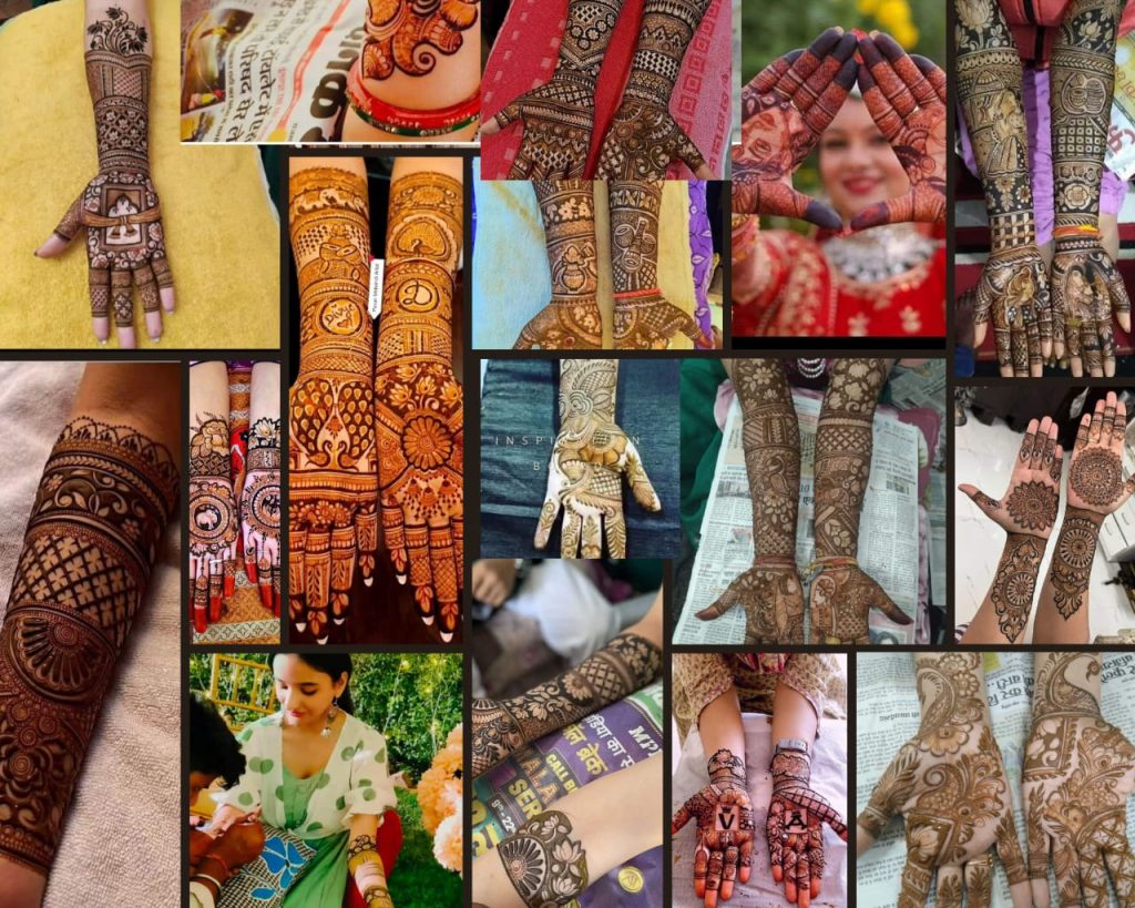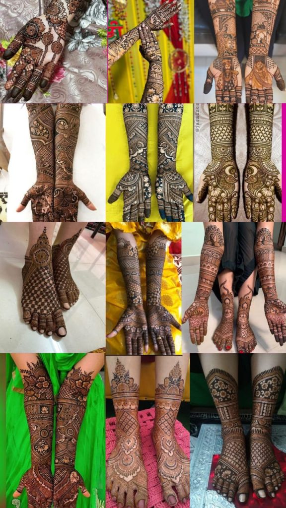 Features: Intricate patterns with motifs like paisleys, peacocks, lotus flowers, dulha–dulhan (bride & groom), and mandalas.
